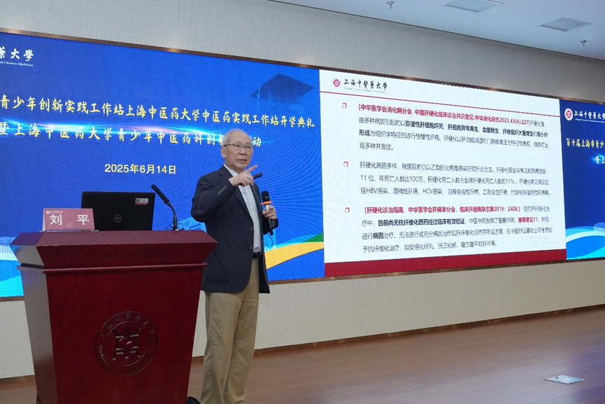 我校副校长舒静,终身教授、上海市名中医刘平,复旦大学药学院党委书记王建新,我校教务处处长张亭立,工作站站长、上海中医药博物馆馆长李赣,我校附属龙华医院急诊科主任医师曹敏等出席。