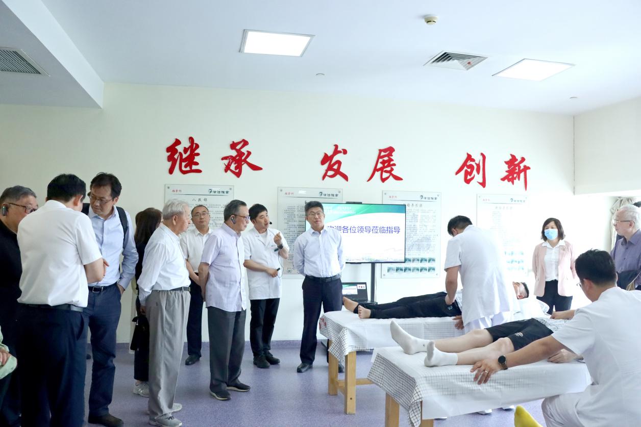 13日下午,调研团队前往天津中医药大学附属第一医院(西青院区)调研。医院党委书记张艳军、院长王金贵等领导班子成员及相关职能部门负责人出席座谈会。医院领导班子成员分别介绍了医院管理创新和学科建设情况、“双轮驱动”发展战略,以及医院着力打造“临床诊疗-科研创新-人才培养”三位一体的发展模式,表示期待与上海中医药大学在重大科研联合攻关、中医技术规范化建设及高层次人才培养等领域深化协同,共促中医药事业发展。双方就附属医院管理、学科建设发展、中医国家标准、人才培育等问题展开交流。会后,调研团队实地参观了医院心血管科、推拿科、针灸部及国际诊疗中心等特色科室。