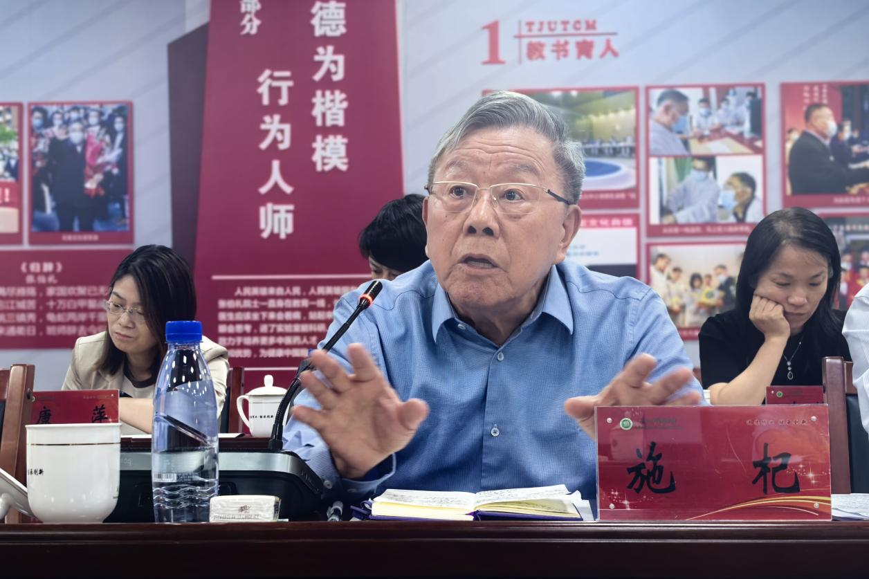 6月13日上午,调研团队首先参观了天津中医药大学现代中医药海河实验室和现代中药创制国家重点实验室。通过实地考察,详细了解天津中医药大学在中医药基础研究、新药研发及成果转化等方面的创新实践。在随后召开的座谈会上,天津中医药大学副校长邱峰简要介绍了天津中医药大学的发展历程、办学特色及近年来在教育教学、科研平台建设、科技成果转化等领域的发展成果。王拥军介绍我校专家委员会的职能。天津中医药大学相关职能部门负责人分别就学科建设、科技创新与成果转化、师资队伍建设等方面分享宝贵经验。与会人员围绕教育教学改革、学科交叉融合等议题进行深入研讨。施杞表示,天津中医药大学坚持传承精华、守正创新,在中医药现代化研究方面取得显著成效。