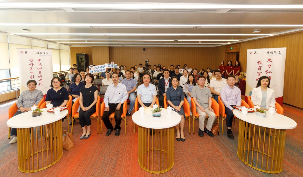 6月18日下午,第54期“岐黄论道·杏林有约”主题活动暨“一站式”学生社区育人活动举办。为迎接学校70周年校庆,本期活动围绕“以仁心护万家 用坚守写芳华”主题,特邀三位长期耕耘在基层医疗领域的杰出校友——“全国先进工作者”严正、“上海市劳动模范”朱震年、“上海市优秀社区卫生管理者”张扬回到母校,分享基层服务心路。校党委副书记沈辉为三位嘉宾颁发“阳光导师”聘书,副校长舒静赠送“非遗剪纸工艺”校友纪念品。学校相关职能部门负责人、师生代表60余人现场参与。