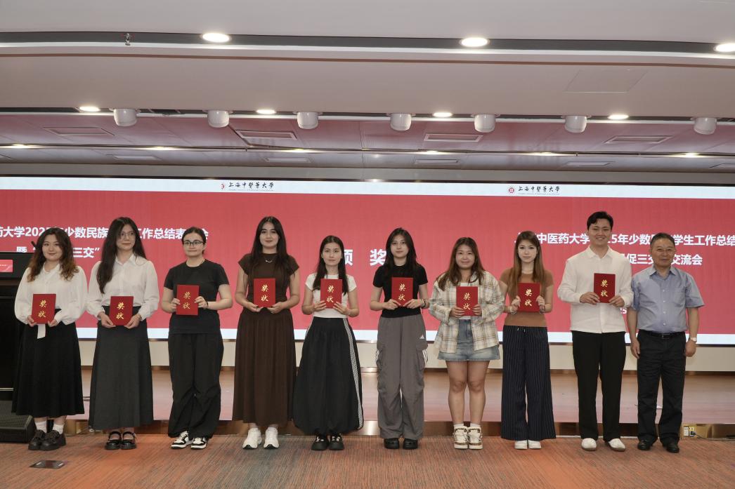 会上表彰了上海中医药大学少数民族学生寒假社会调研获奖者和上海中医药大学少数民族(新疆籍)优秀毕业生。社会调研获奖代表娜扎开提·塔依尔、校少数民族优秀毕业生代表乃比赛·艾尼瓦尔、校友代表艾买提·依米尔以及家长代表、上海市优秀毕业生买地尼古丽·买提库尔班的母亲吐兰汗·日加扑依次作代表发言。
