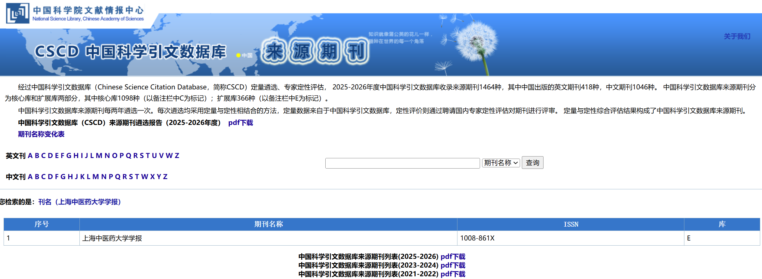 喜讯!《上海中医药大学学报》首次入选中国科学引文数据库(CSCD)来源期刊