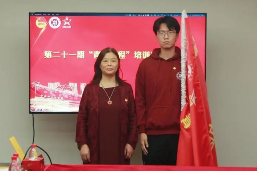 朱惠蓉为第二十一期青马班学员代表授旗。上海中医药大学第二十一期“青马工程”培训班正式开班。