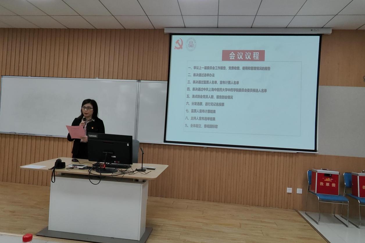 11月23日下午,中共上海中医药大学中药学院委员会党员大会在10105教室召开。学院领导班子成员和全体师生党员参加会议。会议由学院党委副书记王倩蕾主持。