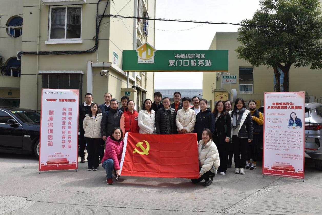 为全面贯彻习近平新时代中国特色社会主义思想,深入学习贯彻党的二十大精神,开好专题组织生活会,33日下午,国际教育学院党支部全体党员、发展对象和入党积极分子赴张江镇杨镇路居民区与该居民区党总支30余名党员联组专题学习党二十大报告,并开展“学雷锋”为民健康咨询服务活动。