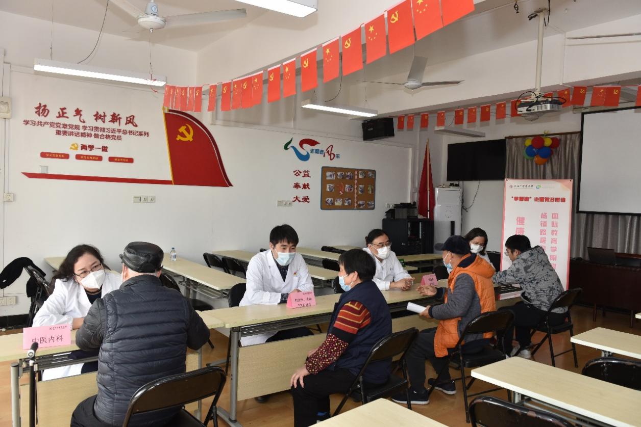联组学习后,国际教育学院党支部的党员为杨镇路居民区的党员、群众开展了健康咨询服务。