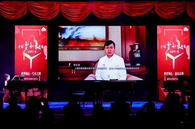 复旦大学附属华山医院感染科主任张文宏视频连线现场活动,表示“樂”(乐)加草字头就成“藥”(药),音乐和医药在悠久的中华文明史上具有渊源,音乐可以治愈心灵,起到舒缓情绪、振奋心情的作用,这次网络钢琴大赛,在疫情背景下将全球钢琴爱好者汇聚在一起传递爱与希望,是一次治愈人心的善举。最后,来自线上线下全球各地的钢琴名师及参赛选手通过“云合奏”,将演出现场的气氛推至高潮。