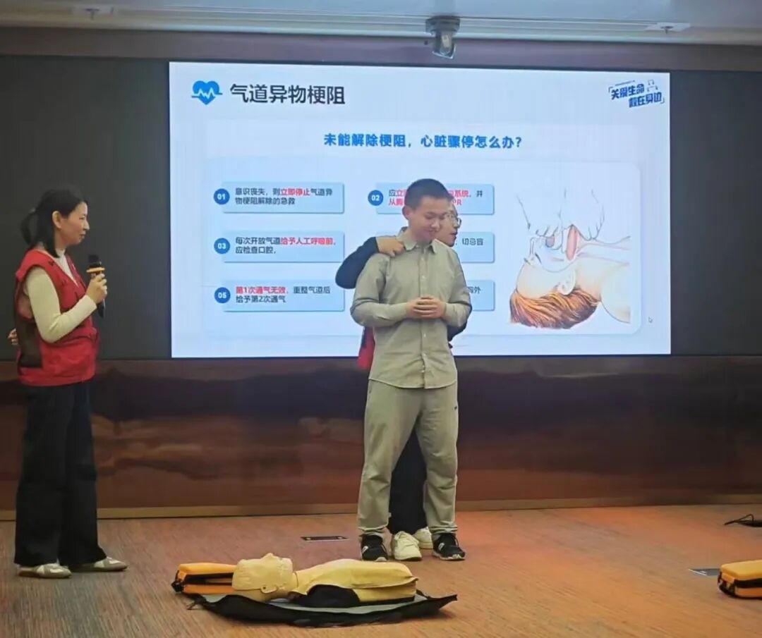 基础培训完成后,两位老师还普及了儿童CPR、气道异物梗阻、溺水等急救场景中的一些简单操作方法,学员们收获颇丰,进一步拓宽急救知识视野,提升综合应急救护能力。
