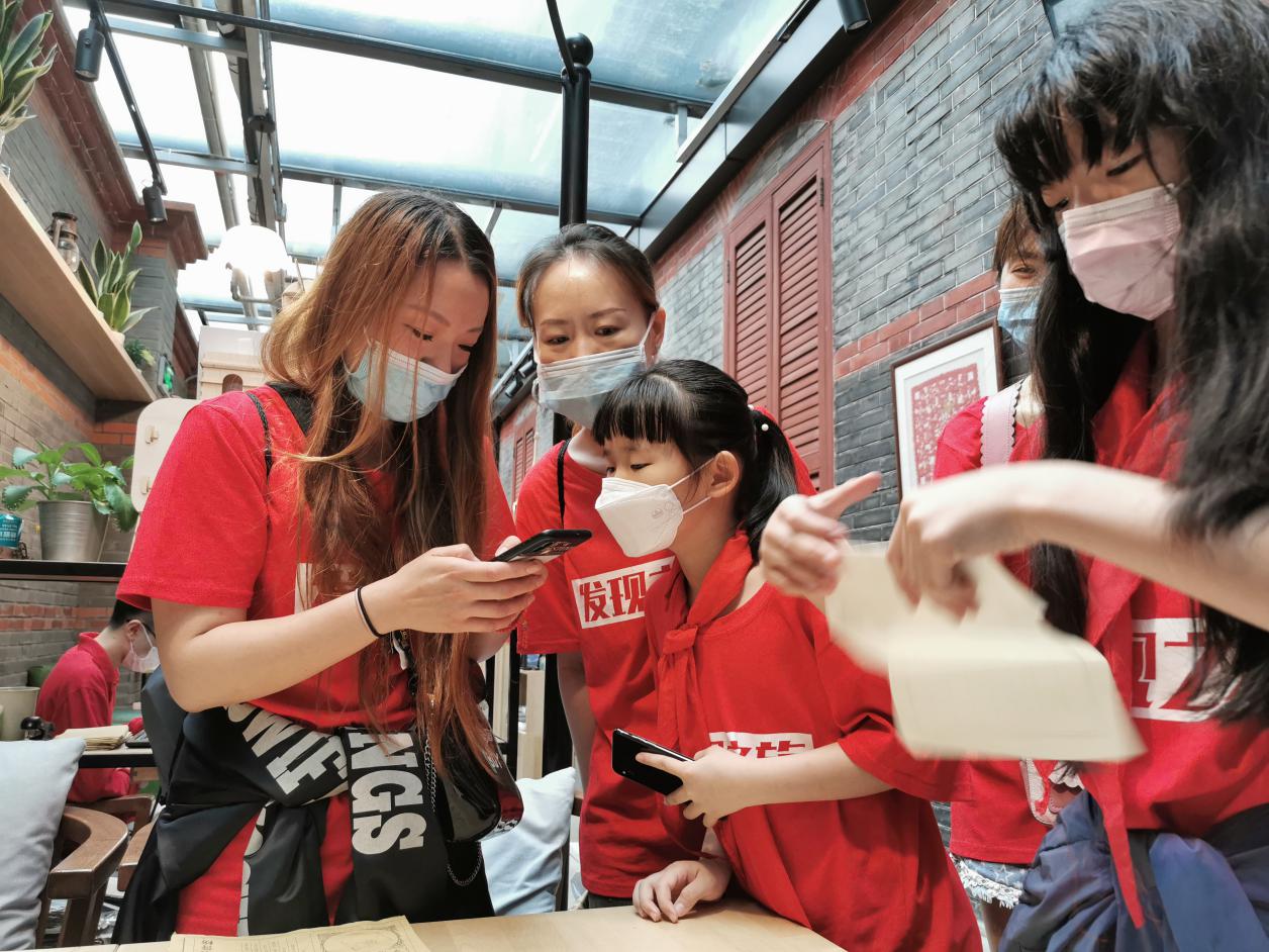 之后,各小组按不同任务情节分为多条线路,依照指引,行走在一大会址周边约一公里范围内的革命纪念地点、上海经典建筑风貌、成片的石库门里弄……城市的红色记忆和人文故事在行程中徐徐展开,在沉浸式体验中感受到上海这座城市的光荣与传奇,体验了建党之路的艰辛与不易。最终各小组在复兴公园“马克思恩格斯纪念像”前顺利“会师”。