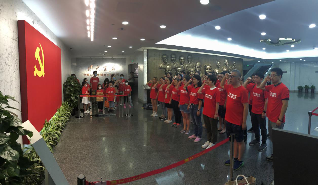 时值江南梅雨季,然而闷热和暴雨丝毫阻挡不了大家的学习热情,全体人员准时到达中共一大会址纪念馆。党员们在医院党委副书记、纪委书记赵庆的带领下,面对党旗庄严宣誓,重温入党誓词,更加坚定为共产主义事业奋斗终身的崇高信念。“医二代”们观摩了父母们入党宣誓,一字一句,声声入耳,满满的自豪感油然而生。