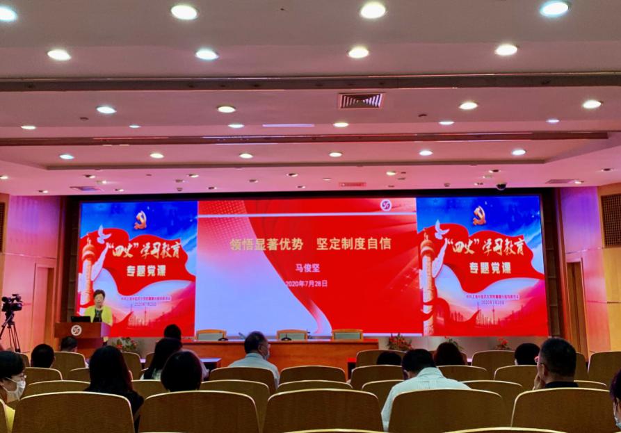7月28日下午,曙光医院党委在曙光医院东院学术报告厅举行“四史”学习教育专题党课,由党委书记马俊坚讲授,党委副书记、院长周华主持。医院党政班子成员、党委委员、纪委委员、各职能部门负责人、业务科室主任、党支部书记、党支部委员、护士长参加学习。
