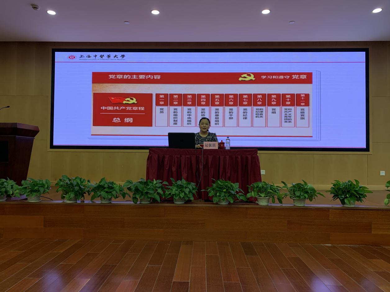 在党课中,陆佩丽从学史是理论武装的必修课、在学史中增强“四个自信”、以史为鉴走好新的长征路三个方面诠释了学习并学好党史的必要性。围绕“中国共产党的第一个纲领”“中国共产党的第一个章程”“中国共产党章程的修正及不断完善”等内容展开,详细解读了党章发展的三个阶段:一大至七大,党章在革命洗礼中走向成熟;八大至十一大,党章对执政党治党理政的艰难探索;十二大至十九大,党章对执政党治党理政的新发展。