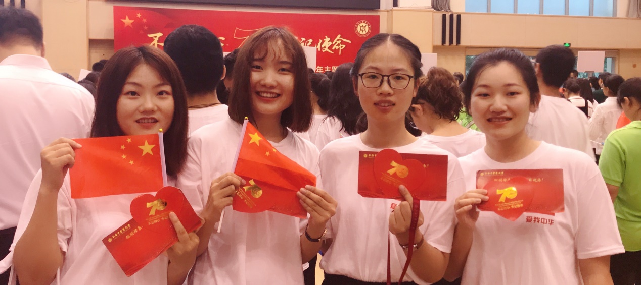 言为心声,发而为愿。在今天,上海中医药大学的每一位成员以不同的形式、不同方式、不同礼遇庆贺这波澜壮阔的70华诞。我们一起升旗、唱红歌,共同聆听习近平总书记在庆祝中华人民共和国成立70周年大会上的讲话。正如习近平总书记所说,中国的昨天已经写在史册上,中国的未来掌握在每一位人民群众的手中。一代人有一代人的使命,一代人有一代人的长征。作为新时代的青年,我们在回顾先辈奋斗史的同时,更该铭记历史、不忘初心、牢记使命、砥砺奋斗!作为青年朋友的知心人、热心人、引路人,我们更应该以身作则,用自己的一言一行贯彻爱国主义教育!