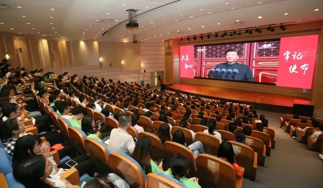 升旗仪式后,康复医学院师生代表前往图书馆报告厅集体收看庆祝中华人民共和国成立70周年大会的实况转播,为新中国成立70年来发生的翻天覆地变化欢欣鼓舞。作为岐黄学子,我们更要铭记并弘扬爱国精神,牢记使命、敢于担当,为祖国发展贡献青春力量。
