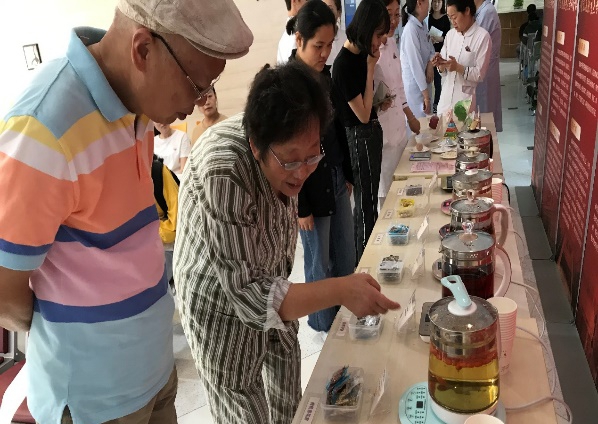为增加患者及家属的感性认识,中医食疗互动体验活动专设每日饮食体验区和中医药茶体验区。利用应用标准食物模型,通过“食物交换份法”向患者讲解饮食治疗方案居家实际操作方法;通过讲解玉米须茶、茅根茶、黄芪茶、山楂茶、决明子茶、荷叶茶、枸杞菊花茶和玫瑰花茶等常见药茶的做方法与用量,活动现场吸引了不少前来参观的群众驻足体验。