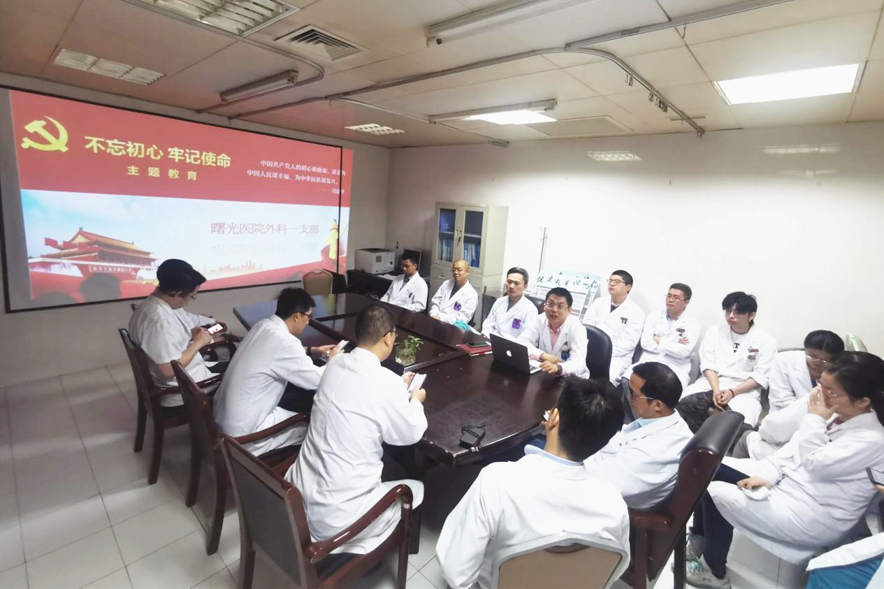 近日,我校附属曙光医院外科第一党支部开展“不忘初心、牢记使命”主题党日活动,全体党员学习《习近平新时代中国特色社会主义思想学习纲要》《习近平关于“不忘初心、牢记使命”论述摘编》。院外科第一党支部书记王树强向支部全体党员汇报学习体会,党员们开展心得交流。