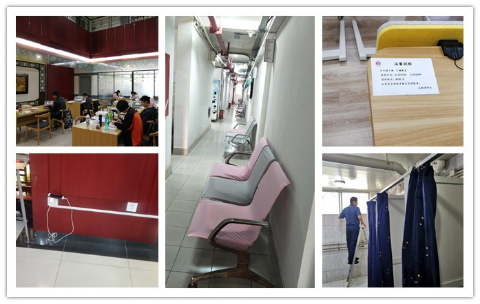 水电维修科为图书馆一楼学习功能区增设插座,安装照明光带,为二楼图书借阅区更换老旧照明灯,努力改善阅读学习环境;总务管理科为275弄研究生宿舍安装隔断浴帘、添置公用吹风机,联系基建整修墙面,更新安装防火阻燃窗帘,积极提升住宿条件;教室管理科为14间教室更换投影机灯泡,更新5台投影机,在每个教室讲台前增贴“温馨提醒”,方便师生及时联系沟通;校门诊部对候诊椅加设椅垫和椅套,在挂号收费处放置“爱心伞架”,洗手池边提供擦手纸,使候诊区域更加温馨便捷,从细节入手,处处流露出对师生的关爱。