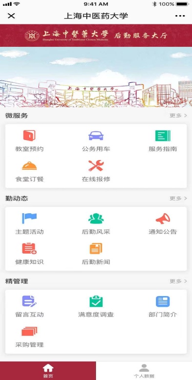 针对既往师生反映较多的“后勤报修流程复杂,受理进度无法跟踪”等问题,后勤保障处在信息办的大力支持下,委托专业公司开发完成“上海中医药大学后勤综合服务平台”系统,这是集合“服务、管理、宣传、评价、互动”功能于一体的“一站式服务平台”。通过手机微信端登录“上海中医药大学后勤服务大厅”公众号,即可为师生们提供在线报修、教室预约、食堂团餐、公务用车预定等高效便捷的线上“微服务”,并可第一时间为师生推送最新“勤动态”及后勤服务指南,师生们还可以通过“精管理”随时参与互动留言、服务监督,让后勤服务更规范、更精细,让校园生活更便利、更快捷。目前平台正在最终的内测调试阶段,拟于2019年11月底正式上线。