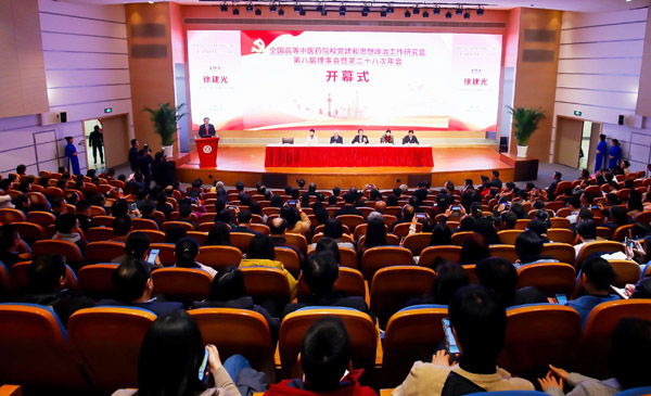12月26日至28日,全国高等中医药院校党建和思想政治工作研究会第八届理事会暨第二十八次年会在上海中医药大学召开,来自全国26所高等中医药院校的党委书记、党务部门负责人、党组织负责人、研究会理事和获奖代表等300余人相聚一堂,聚焦坚持党对教育工作的全面领导、紧抓立德树人根本任务及思政工作生命线、全面提高基层党建质量等主题开展深入交流研讨。