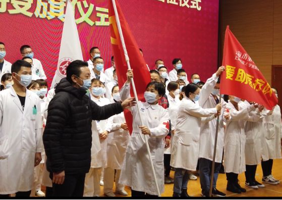 2月17日16:00,医院为援鄂医疗队举行了出征仪式。各级领导参加,医院院长王杰宁主持。