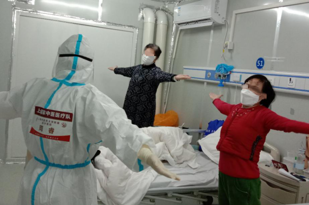 谁说病房一定是沉闷、压抑的?医生和患者在医院病区走廊锻炼的情景让病房有了更多生机。来自上海中医药大学系统的专家方邦江、龚亚斌、王振伟、周睿、张熙,湖北黄石市中医医院团队方晓明和程伟、占超,湖北六七二中西医骨科医院院长周诗晶带领的团队等一大批一线医护人员亲自指导患者锻炼“抗疫强身功”。患者孤独、焦虑和抑郁的情绪一扫而空,锻炼后体质增强了,临床疗效也更上一层楼。患者在锻炼“抗疫强身功”后感觉良好,纷纷点赞,对上海中医药大学功法团队、一线的抗疫医生和专家深表感谢。
